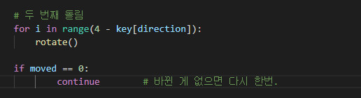 - 반복 시 merged라는 변수를 추가해 한 번 merge 된 칸은 다시 merge 될 수 없도록 하였음.
